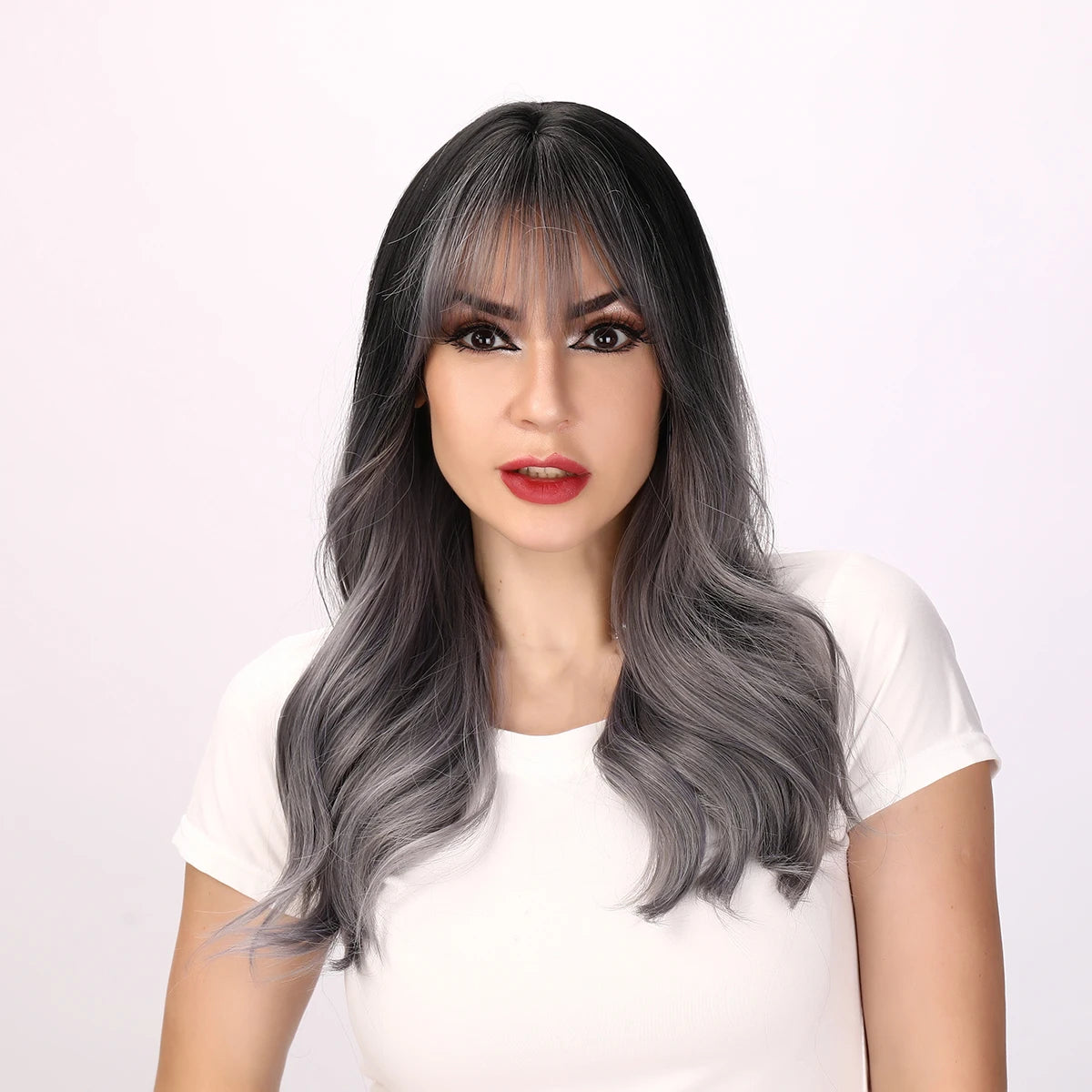 2025 Fashion New 22-inch Gray Gradient Highlights Ladies Wig-hair End Highlights, Rose Mesh Breathable Lining Design. SM6057