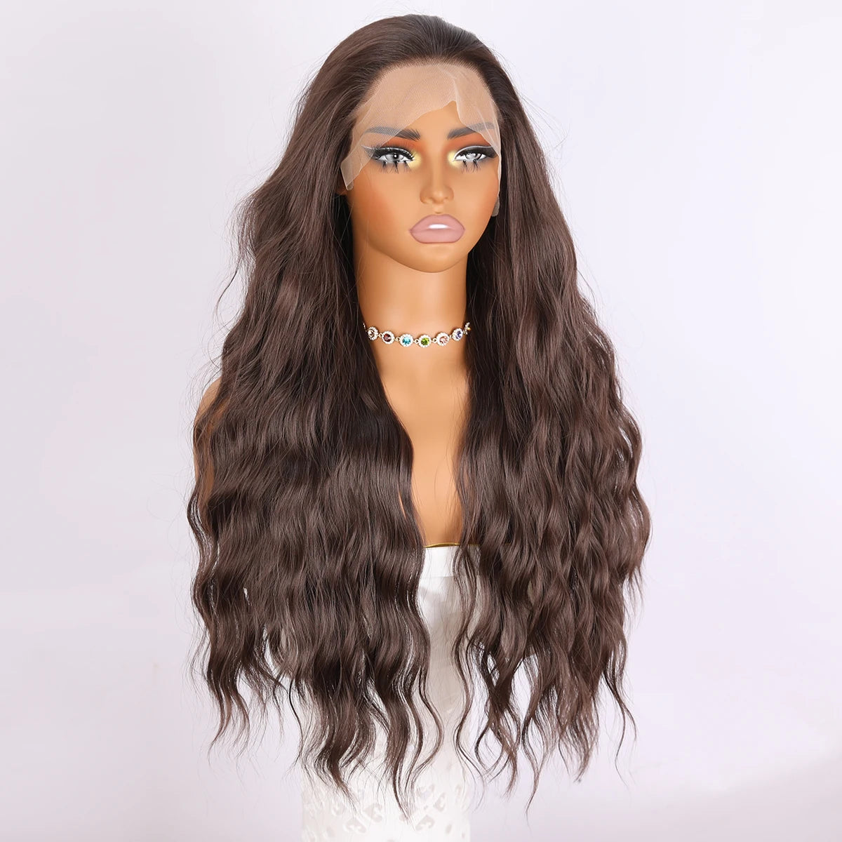 2025 New 13*4 Lace Dark Brown Wavy Fluffy Long Curly Hair Daily Wear Chemical Fiber Women’s Leave SM9825