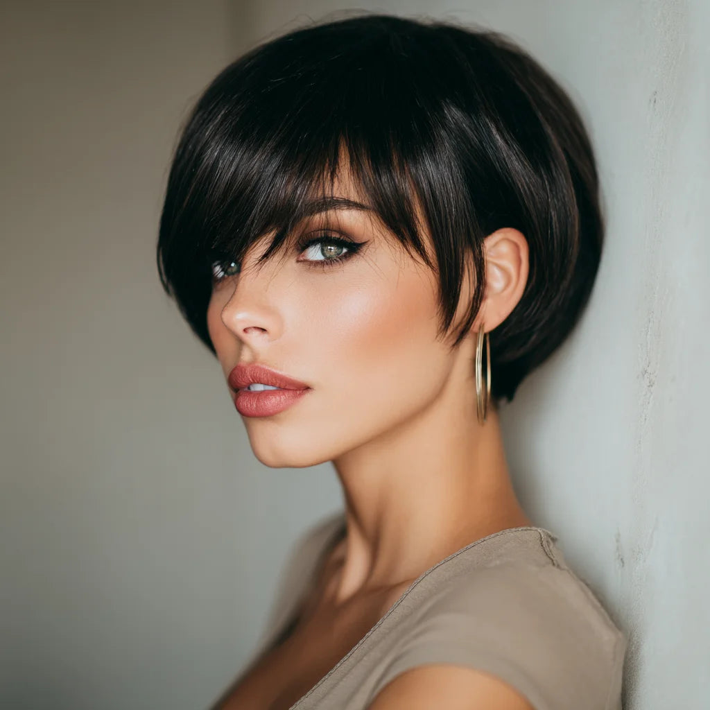 Be the first to review “2025 Wholesale Dark Brown Layered Synthetic Short Hair Wig with Bangs Looks Natural SM166-4”