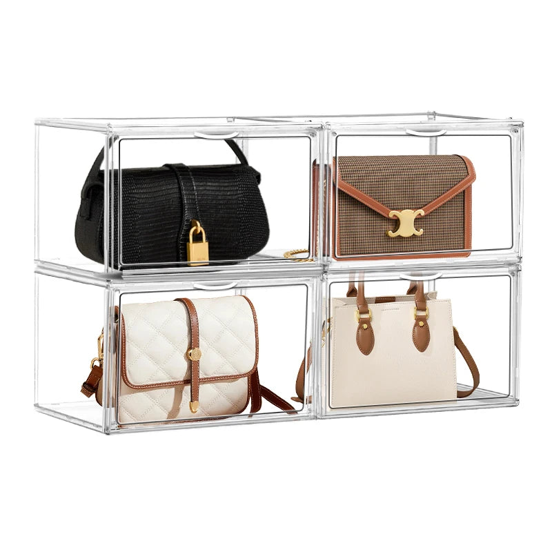 4pcs Plastic Handbag Shoes Storage Boxes & Bins High Transparency Display Cabinet Foldable Clear Handbag Storage Box Rack