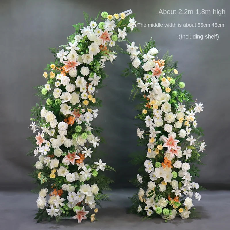 New Ivory Wrought Iron Wedding Arch Outdoor Curved Door with Horn Flower Arch Shelf for Cross-Border Foreign Trade