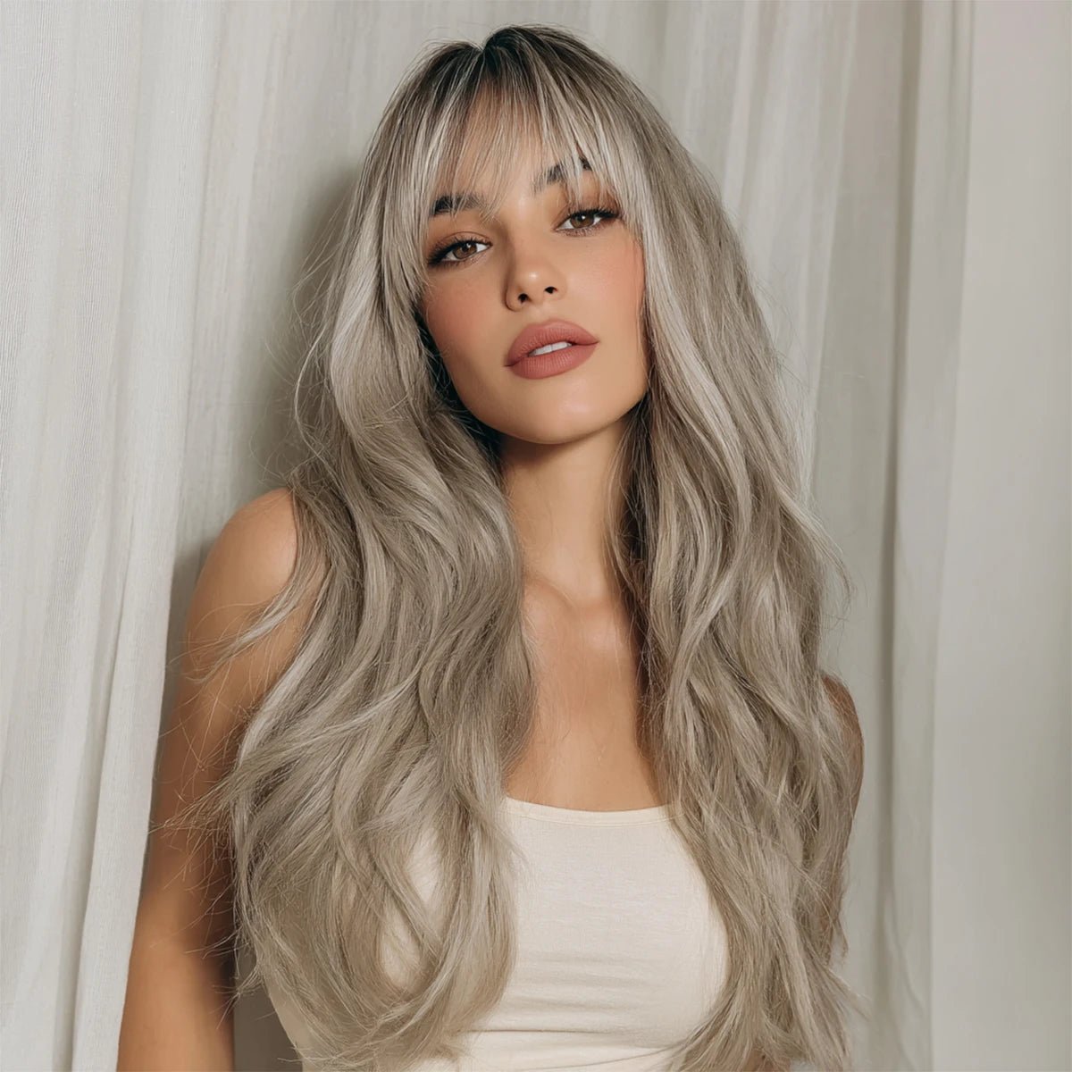 Be the first to review “North America Hot Selling Brown Gradient Long Curly Hair Wig with Bangs Synthetic Wig for Women SM457”