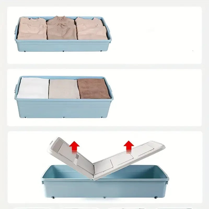 Stackable Underbed Underwear Storage Bin Multifunctional Movable Plastic Clothes Storage Organizer Container with Wheel
