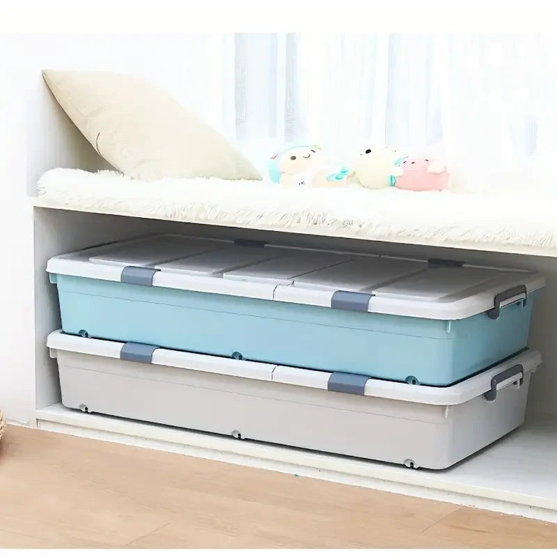 Wheeled Under Bed Kids Toy Clothing Organizer Portable Dust-Proof Plastic Shoes Storage Bin Container with Lid